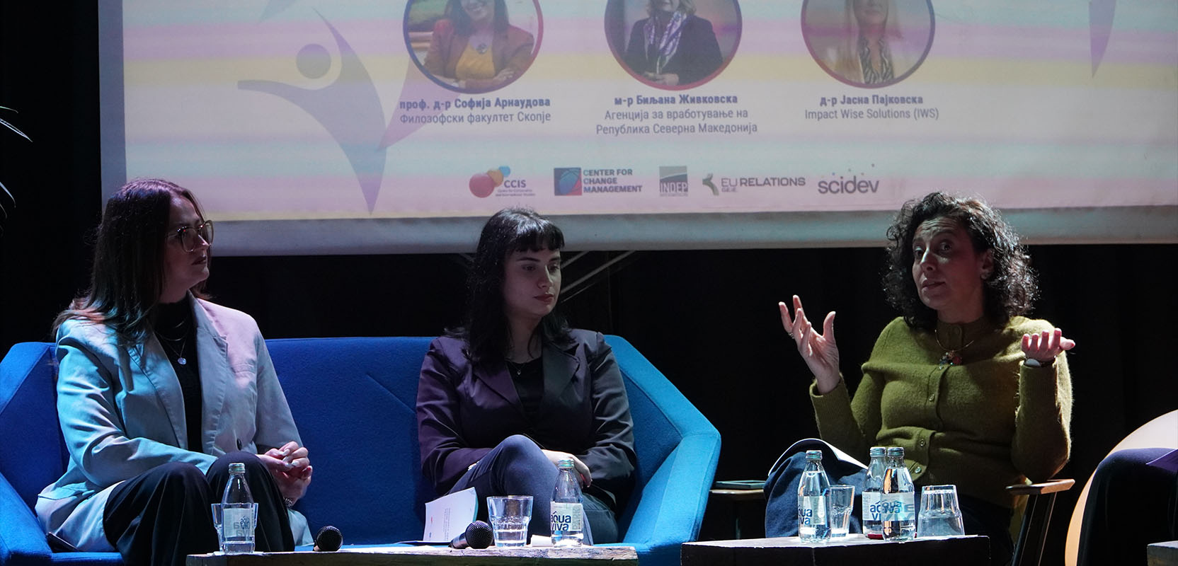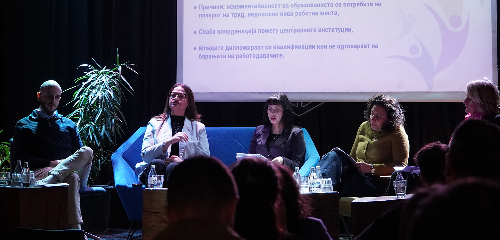 - Ане Матевска од Националниот Младински совет на Македонија, која ги презентираше наодите и искуствата на организацијата со младинската невработеност во државата, а со посебен фокус на практичната настава и кариерното советување.